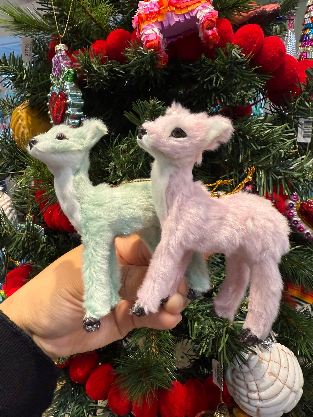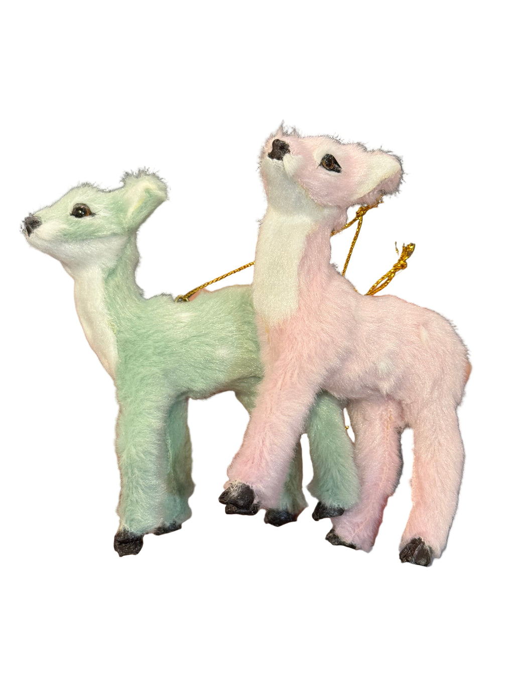 Bring a whimsical touch to your holiday decor with our reindeer ornaments, available in charming mint and pink. Perfect for adding a pop of color and festive cheer to any tree or space.